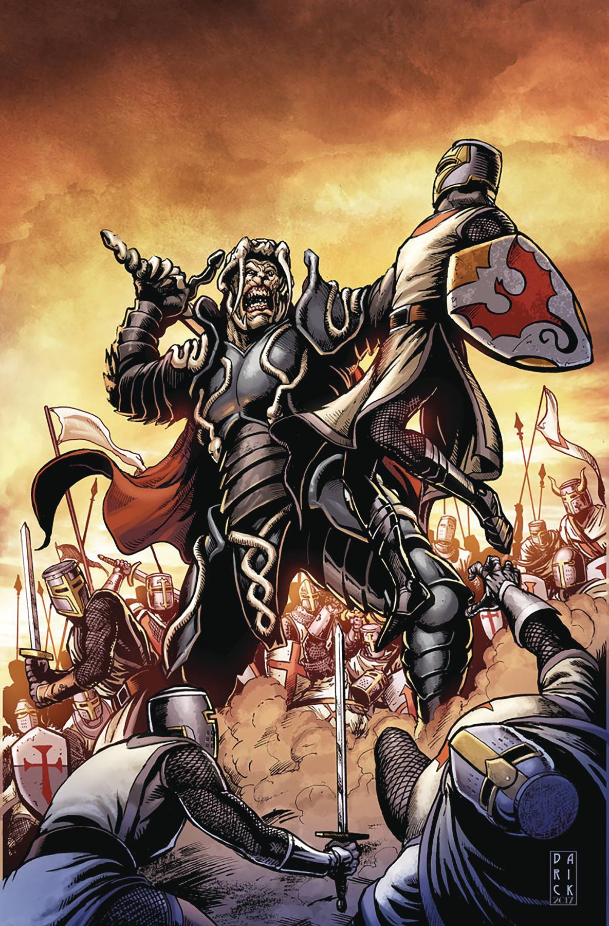 Brutal Beginnings! Centuries ago- at the height of the dark ages- one of the world's first psiots has made a terrible discovery... he is not alone. Lurking in the shadows of humanity awaits the 'The Strombringer-' a psiot with it a darkness so great- it will destroy everyone with special abilities around him. But what great secret about these legendary figures will finally be exposed...and how will it shape the catastrophic Harbinger War that is to come? 'MASSACRE' presents an insidious interlude traveling back to the origins of evil itself- as Harvey Award nominated writer Rafer Roberts (Plastic Farm) and superstar artist Darick Robertson unveil the origins of the Valiant Universe's next major villain... and reveal an untold confrontation between H.A.R.D. Corps. Leader Charlie Palmer and Alexander Solomon.